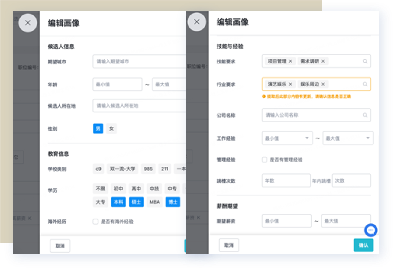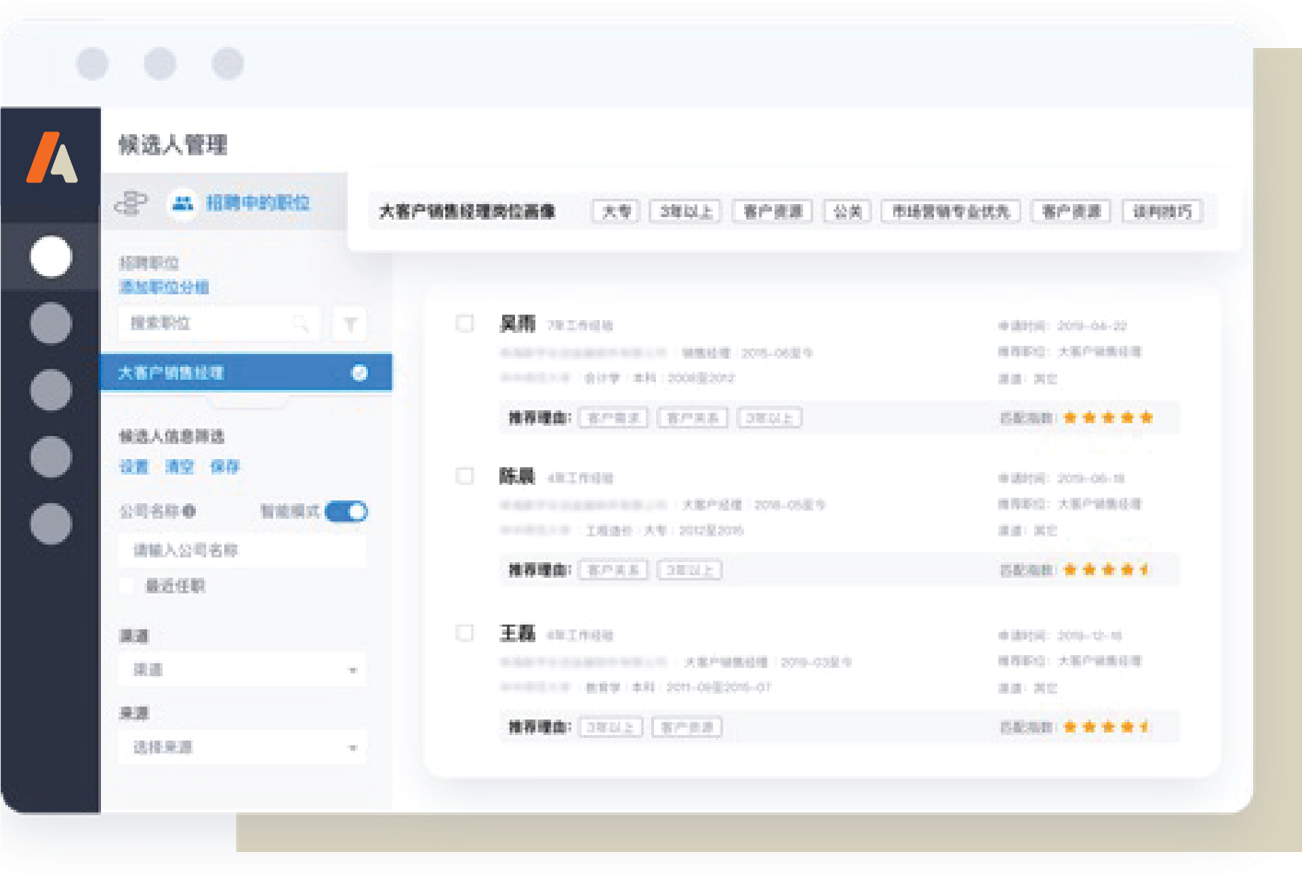 当社のインテリジェントな人材プール管理システムは、顧客のポジションが掲載される際に、求人人材画像に基づき、LEADAMAN の人材プールの中からマッチング インデックスの高い候補者を効率的に見つけることができます。